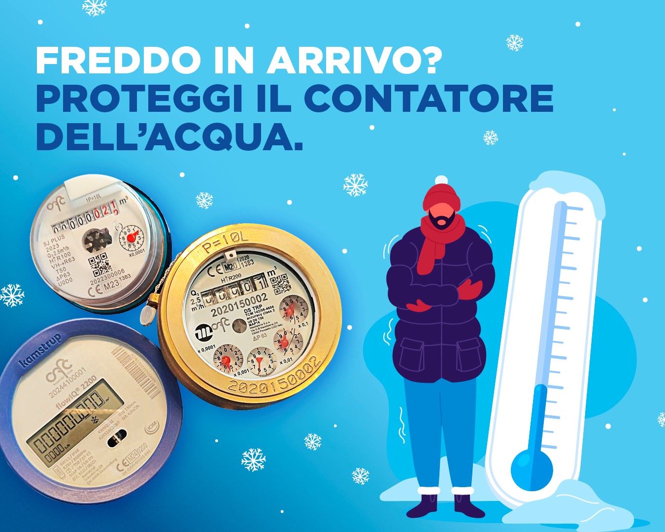 le previsioni di un possibile abbassamento delle temperature annunciato per i prossimi giorni espongono i contatori dell’acqua installati all’esterno dell’immobile o in locali non riscaldati al rischio di congelamento e rottura, con costi a carico dell’Utente per la sostituzione del contatore o per la riparazione di eventuali guasti agli impianti interni all’immobile.