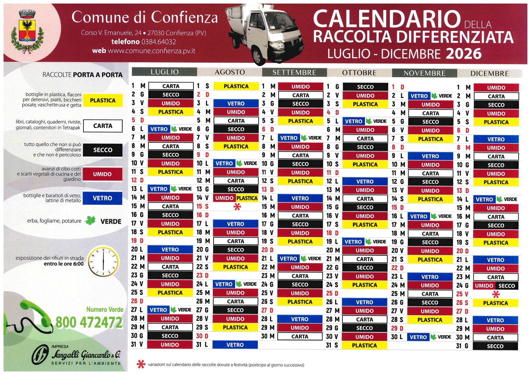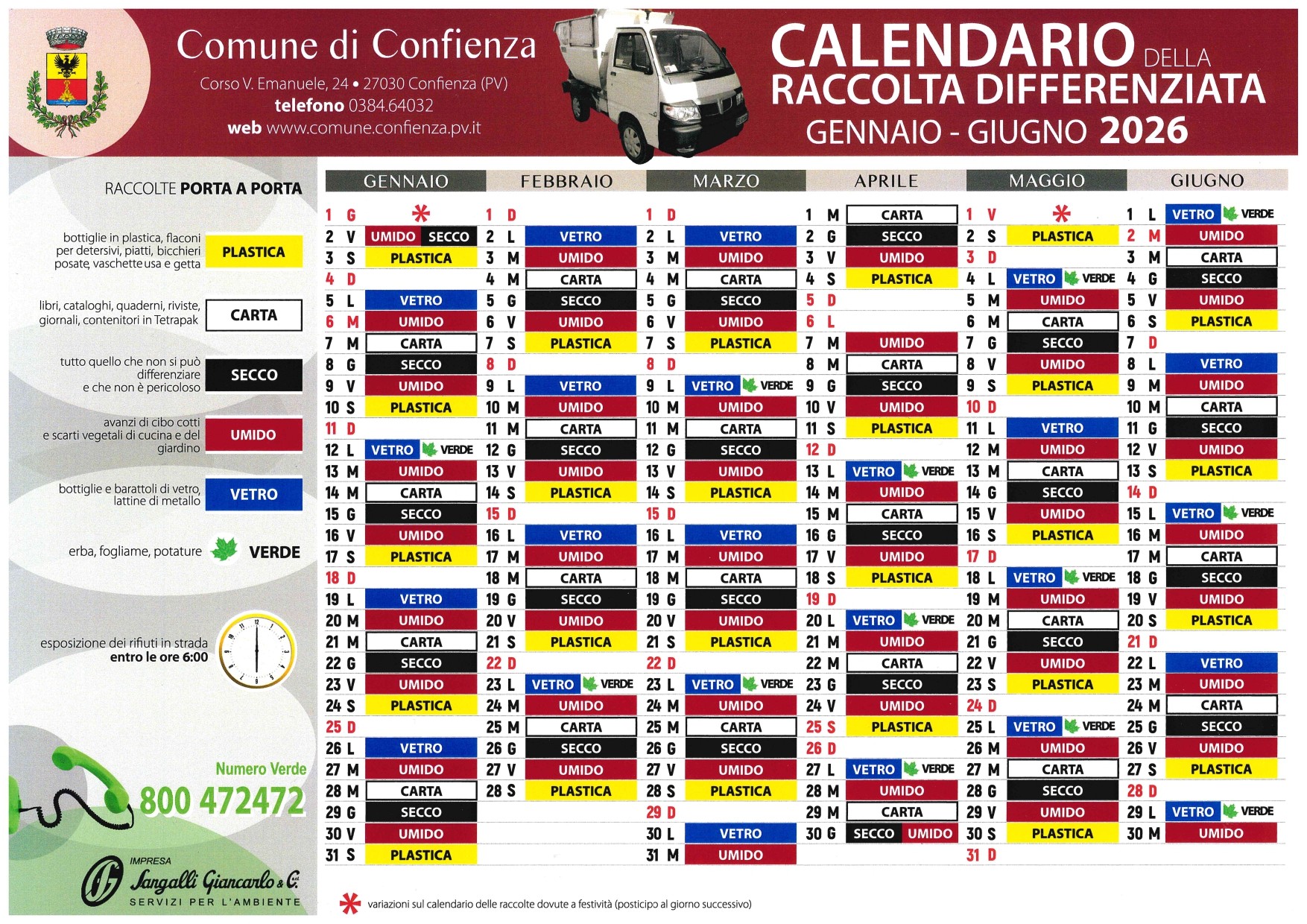Calendario della raccolta differenziata 2026